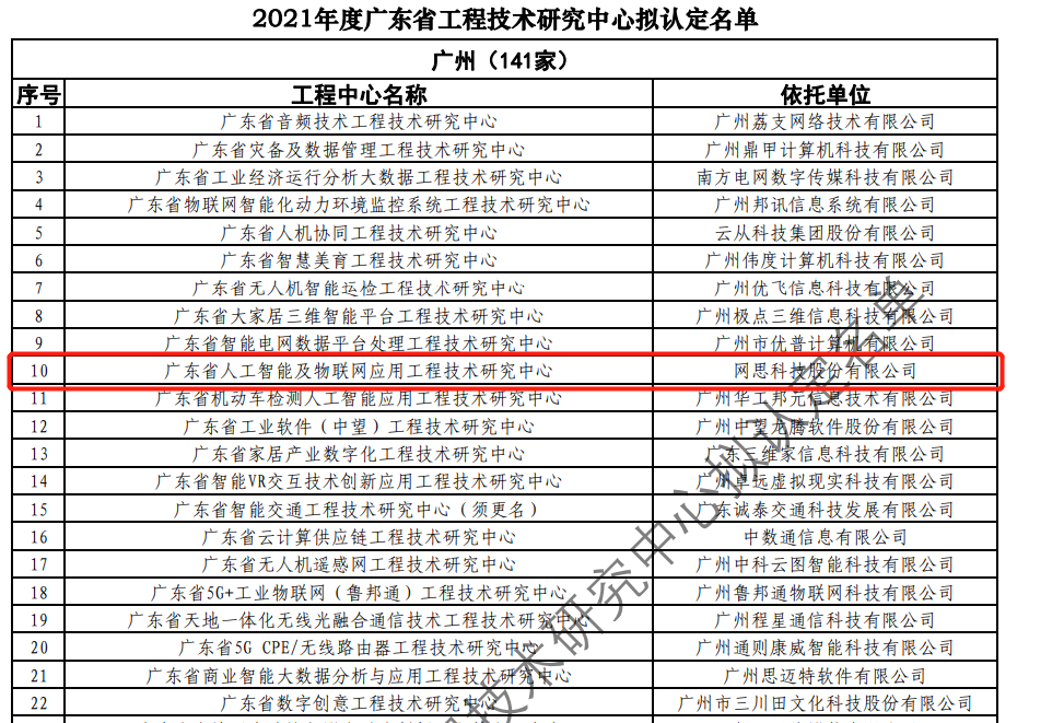 日前,广东省科技厅发布2021年度广东省工程技术研究中心名单。经过层层筛选、专家评审,依托金年会平台-金年会(中国)一站式服务平台 建设的“广东省人工智能及物联网应用工程技术研究中心”榜上有名。广东省工程技术研究中心主要依托省内行业、领域具有科技实力的、拥有一定规模以上创新型企业建设,部分依托高校和科研院所组建。工程中心旨在